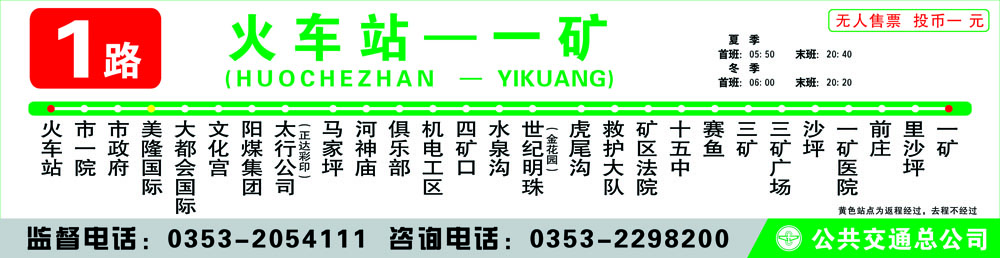 1路區(qū)間 火車站——賽魚(太行國際新城) 線長:9公里